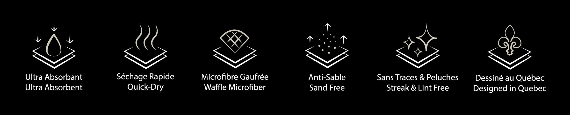 La microfibre gaufrée est utilisée pour nos serviettes de plage XL et nos linges à vaisselle. Elle assure une absorption maximale, un séchage rapide et une longévité supérieure. Les serviettes de plage sont idéales pour le voyage, tandis que les linges à vaisselle facilitent la cuisine avec une efficacité remarquable.
