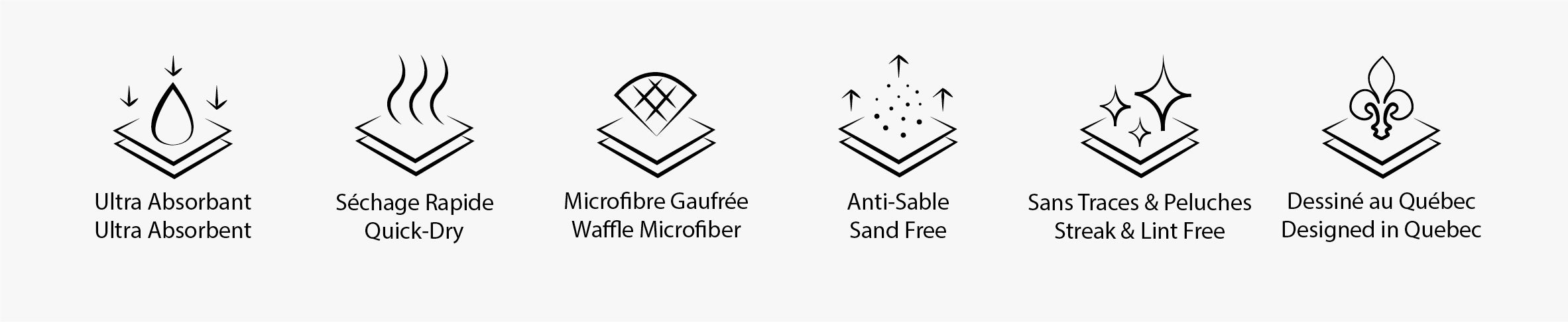 - La microfibre gaufrée, idéale pour nos serviettes de plage XL et nos linges à vaisselle. Elle assure une absorption maximale, un séchage rapide et une longévité supérieure. Nos serviettes de plage sont parfaites pour voyager, tandis que nos linges à vaisselle facilitent la cuisine avec une efficacité remarquable.